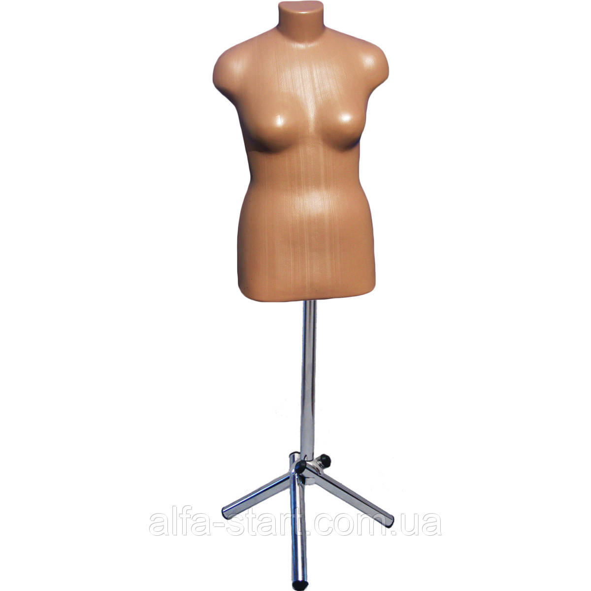 Жіночий манекен торс тілесного кольору на хромованій ніжці